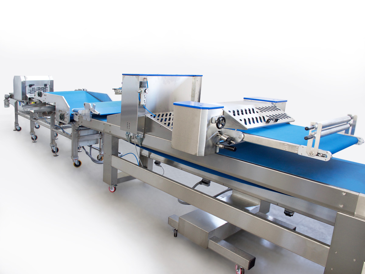 Pastry-line MAXI allows to achieve several types of products (both sweet and savoury) made of puff pastry, yeast dough and Danish pastry.