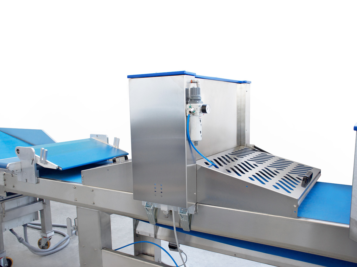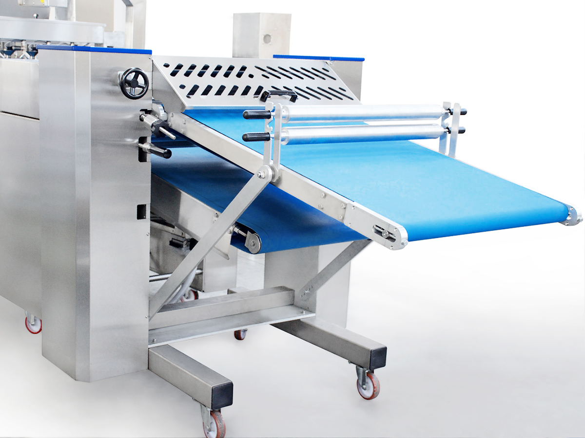 The gauging unit allows to carry out a final check on the dough, ensuring a constant thickness. Moreover, it allows to work continuously since it ensures a perfect connection between the various pieces of dough, that are attached one by one by passing through the gauging rollers.