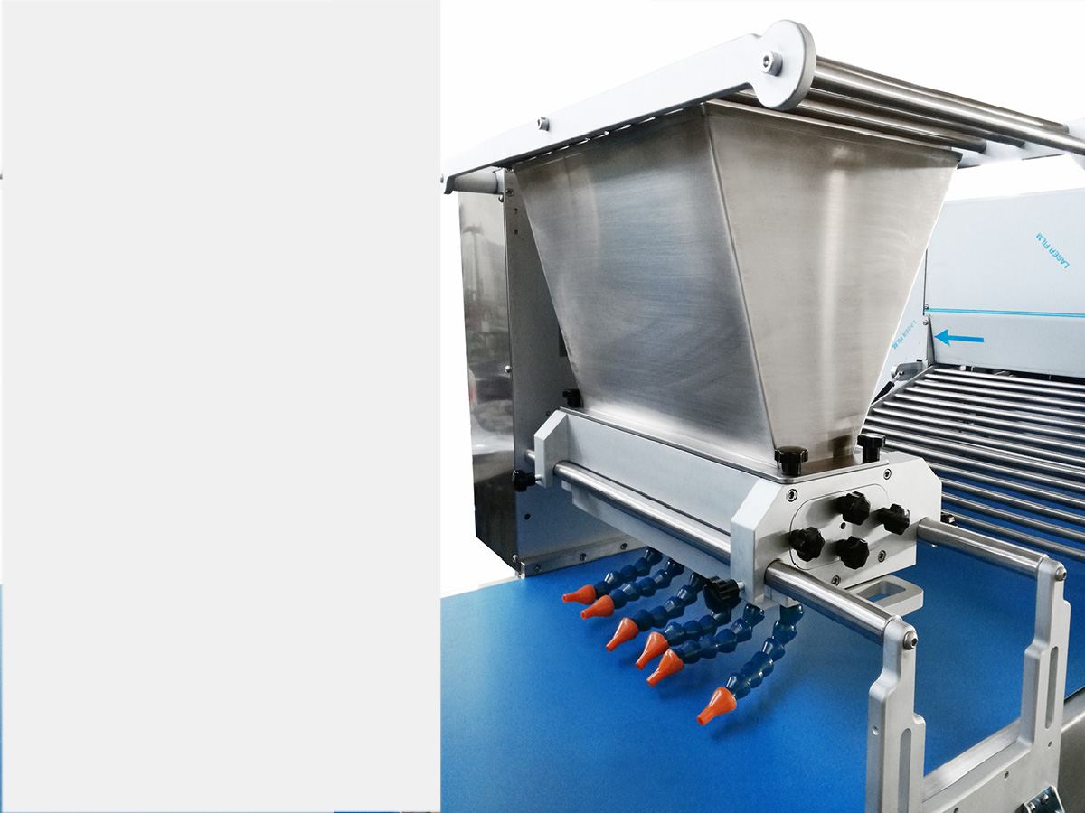 - Gear depositor: represents the cheapest solution. It’s the perfect solution for fillings that do not present any problems in dosing, such as creams and jams without pieces. This depositor is equipped with adjustable nozzles and different collectors can be easily installed.